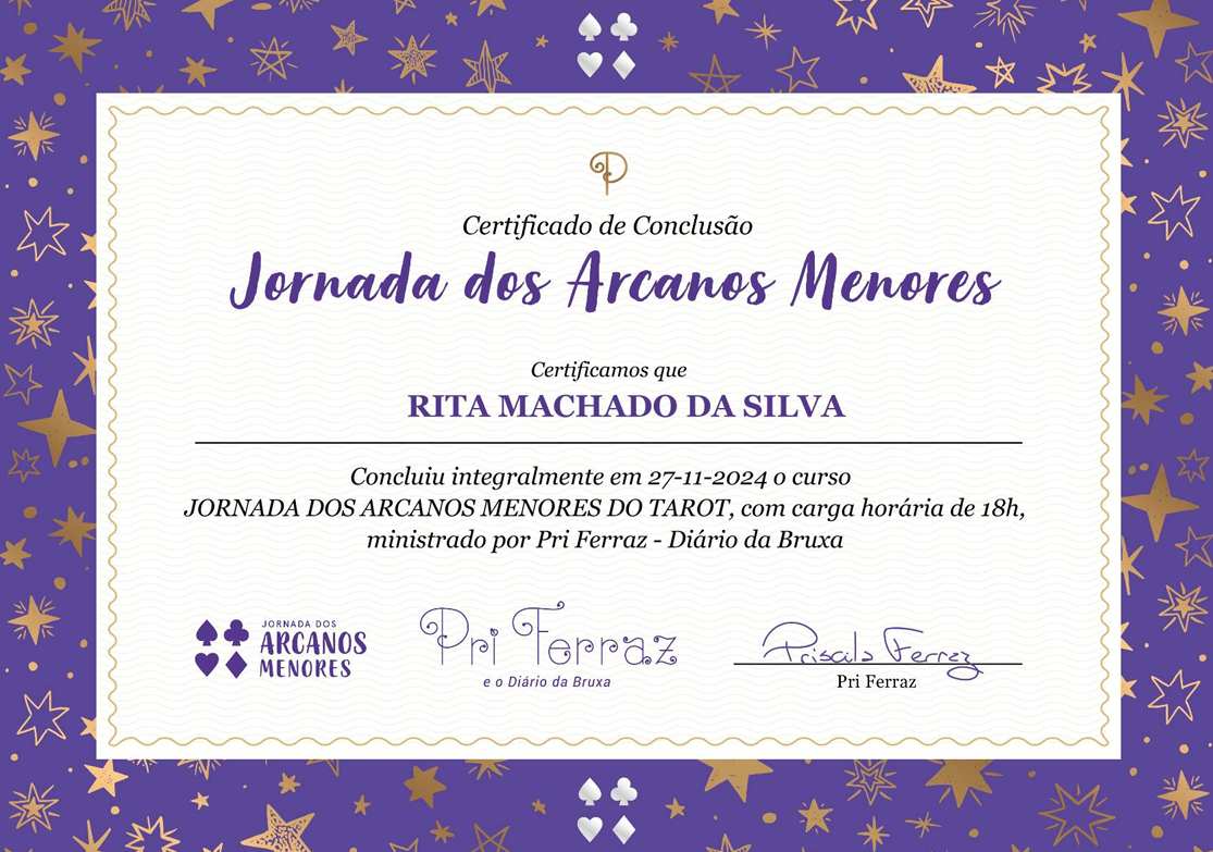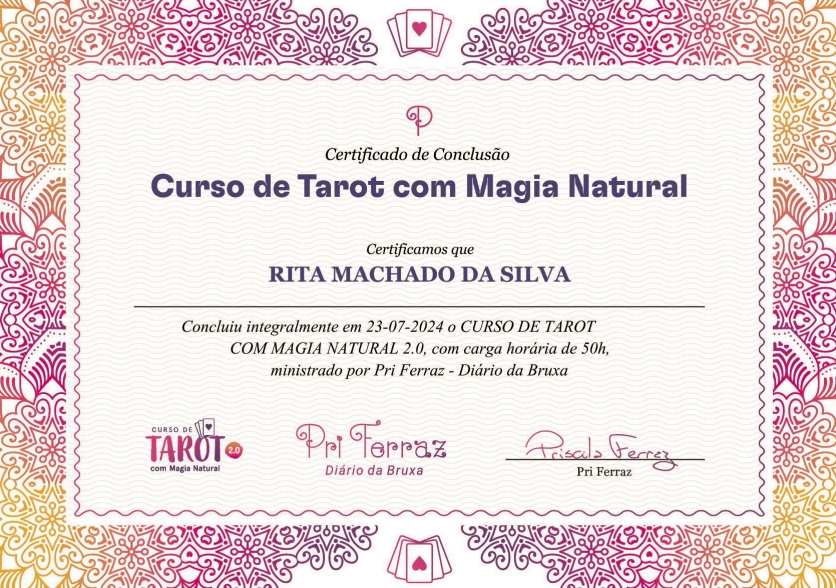 A par de todo o percurso nas artes, sempre me senti conectada com a espiritualidade e com as sabedorias holísticas. Sou extremamente encantada e ligada ao Universo, às cartas, ao tarot, às energias, aos cristais, e aos 5 elementos desta dimensão. Consequentemente a toda esta minha paixão, sou certificada em Tarot e Magia Natural.